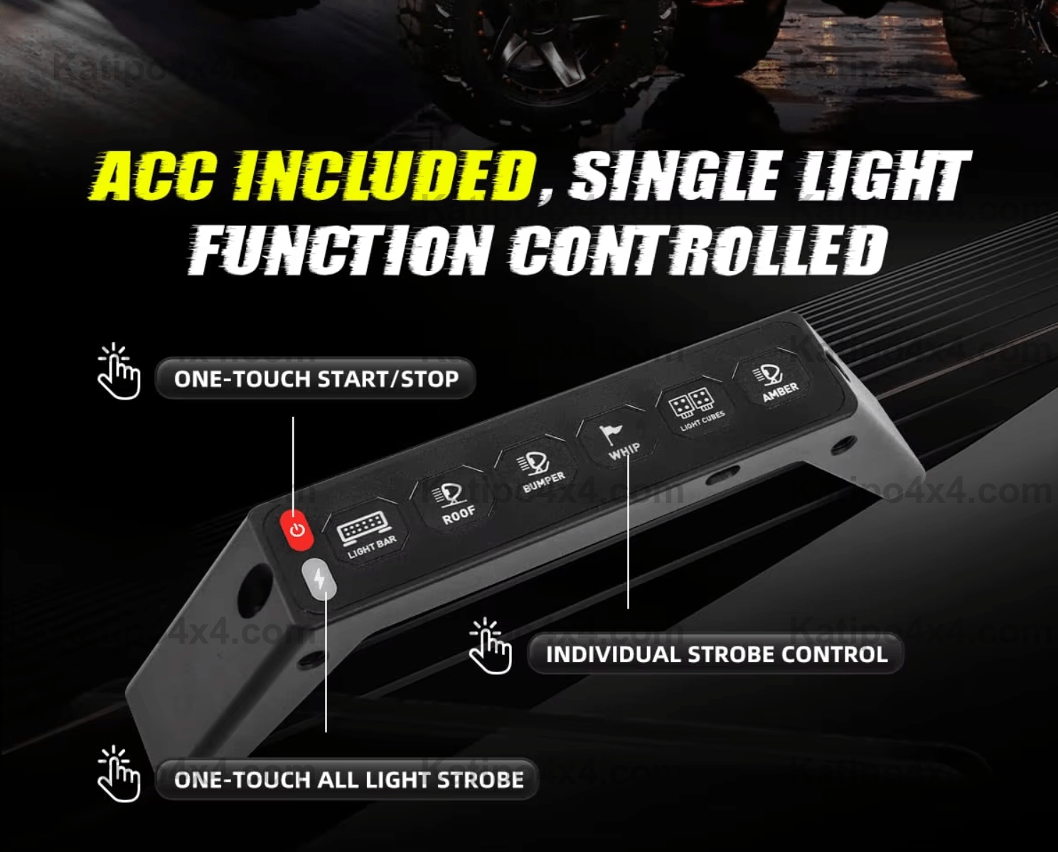 One click flashing, one click constant lighting, each lights can control seprately